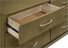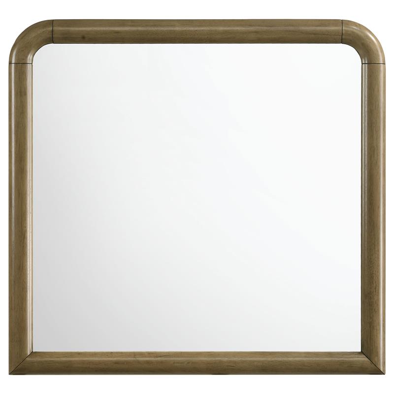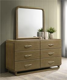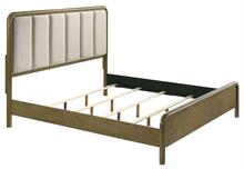 Transform your bedroom into a stylish and serene retreat with the modern Amsbury 4 piece queen bedroom set by Coaster. The warm nutmeg wood finish across all pieces creates a cohesive and inviting atmosphere, while the soft, beige upholstered headboard on the bed adds a touch of luxury. The case pieces feature smooth metal extension glides for effortless functionality, and the rounded corners on all pieces contribute to a sleek, contemporary look. Matte nickel hardware provides a refined accent that complements the overall aesthetic. Crafted from solid Asian hardwood and engineered wood, this set combines timeless design with everyday practicality.