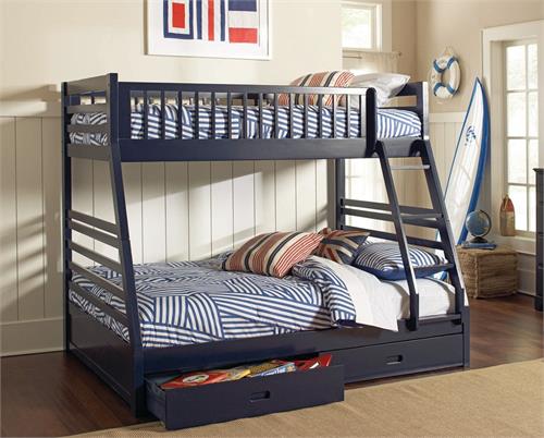 Cozy and casual, the Ashton Twin over Full Bunk Bed, by Coaster of America, comes complete with attached ladder and safety rails as well as two storage drawers to keep bedding and bulky clothes nearby. Constructed from solid pine, this bunk bed is versatile and designed to last.