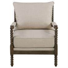 Careful attention to design detail brings a truly stylish look. The fashionable Blanchett spindle style chair, by Coaster, adds a chic, stylish vibe to any space. Ornate elements on this accent chair offer an artistic feel that blends easily in a transitional space. A slender frame with a black finish features sweet beading to deliver romance and attitude. A lovely beige linen like upholstered seat base and back pillow keep it simple and elegant. Stylize a family room or den with this charismatic chair.