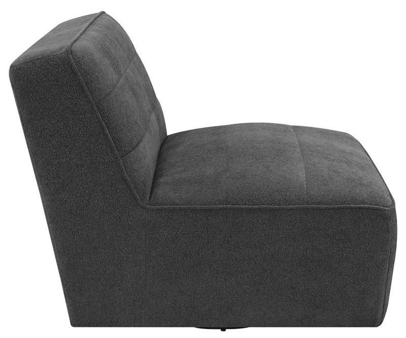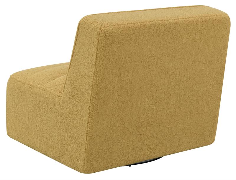 The restful low-profile design of the Cobie contemporary accent chair creates an inviting place to relax. Built with a 360-degree swivel base mechanism, this playful accent chair offers a boxy style and a flush base that sinks into a space effortlessly. Wrapped entirely in a plush faux sheepskin upholstery, this accent chair offers a supremely cozy spot to unwind with a book or chat with family and guests. Horizontal channeling and welt trim offer classical, yet retro-inspired elements. Place this swivel accent chair in an open seating area and versatile open concept floor plan.