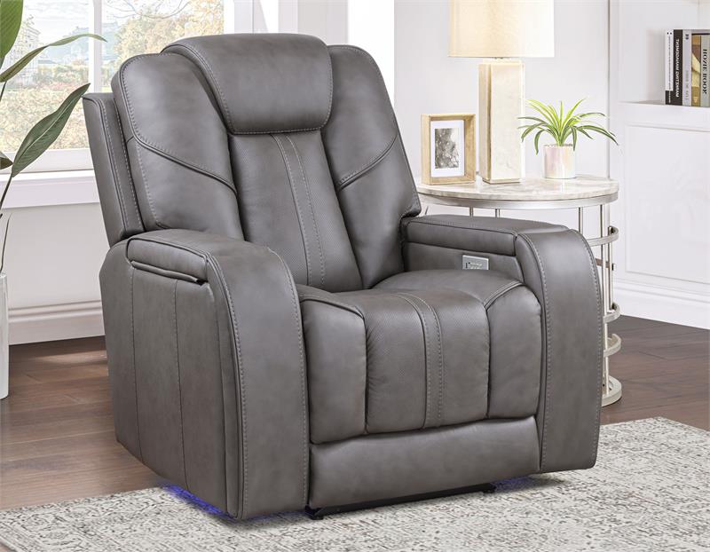 Wrapped in plush mossy-gray leather, the Daniel Reclining Sofa features built-in speakers, a subwoofer, and vibration transponders for lifelike surround sound. Air massage and soothing heat functions (on Sofa and Loveseat) enhance relaxation, while wireless charging, integrated lighting, and easy-access controls offer seamless convenience.