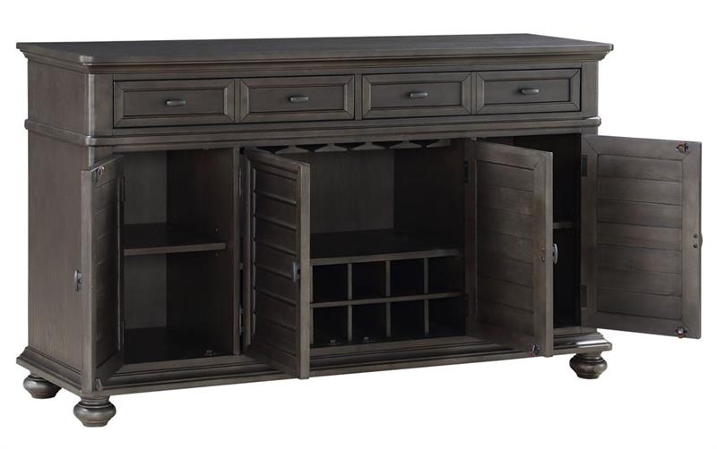 •Server features bottle and hanging stemware storage