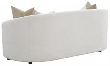 Soft curves, round edges highlight the beautiful tailoring of the new Rainn sofa and loveseat by Coaster of America. Covered in a neutral boucle upholstery is a trendy texture must have for today's decor. The attached seats with a tight back will insure Rainn's well kept appearance. Accent pillows with premium faux down pillow fill, add the perfect finishing touch for this popular living room.