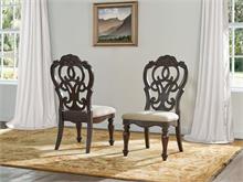 The Steve Silver Royale evokes memories of the detail and craftsmanship of yesterday's antiques in a dining package updated for today. A warm, brown pecan-colored finish over oak and ash burl veneers combines with shaped fronts and tops to create a truly grand presentation. Etched glass and carved scrollwork complete the presentation to impress your family and friends at any gathering.