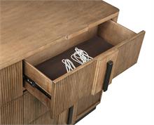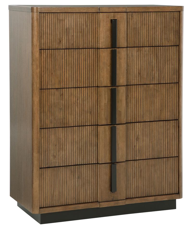 Bring grand scale and handsome elegance to your bedroom retreat with the Terrace three-piece modern bed and nightstand set by Coaster. It centers on a storage bed with a tall headboard and adds two wall panel nightstands. Each includes one drawer and a design that echoes the headboard of the bed to create cohesion. The bed includes a low footboard with two storage drawers that are ideal for accessories and linens. A cool ash brown wood grain finish pairs with dark accents to create a fresh, contemporary look and feel.